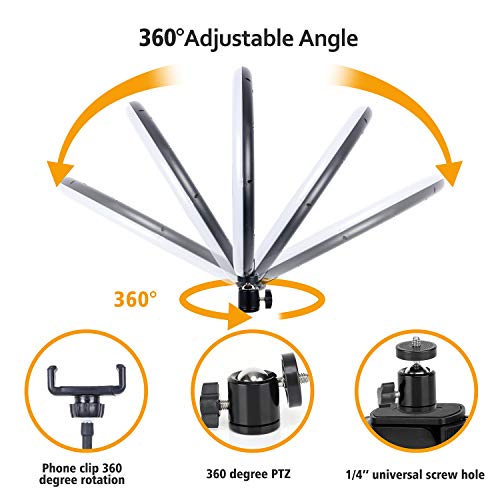- 【حامل موبايل بزاوية 360 درجة】 حامل موبايل عالمي مع إسفنجة غير قابلة للانزلاق ليحمل موبايلك بإحكام دون خدشه. تصميم قابل للدوران 360 درجة ليجعل من السهل عليك التقاط الصور/مقاطع الفيديو المثالية. يتراوح العرض حتى 9 سم ليتوافق مع معظم الهواتف الذكية.