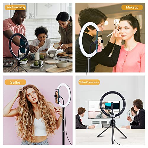 NyShine - حلقة إضاءة LED دائرية 25 سم مع حامل ثلاثي القوائم صغير قابل للتمديد بطول 1.70 متر من نايشاين، حلقة قابلة للتعتيم لسطح المكتب وحامل جوال لليوتيوب والتيك توك/صور السيلفي/البث المباشر/المكياج/التصوير