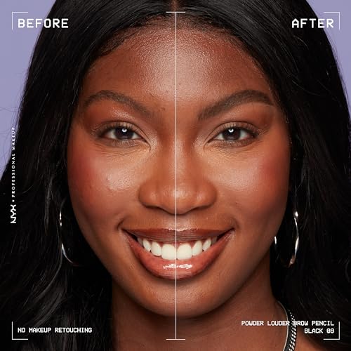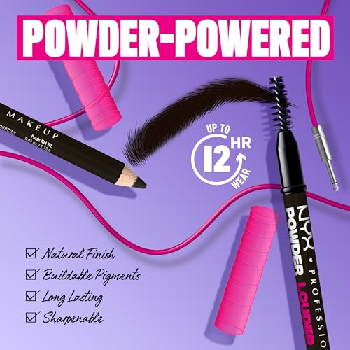 - Contents: 1 x NYX Professional Makeup Powder Louder Brow Pencil, Buildable Shades, Up to 12 Hours of Wear, Transfer and Fade Resistant, With Thickening Micro-Fibres, Vegan Formula, Shade: Black