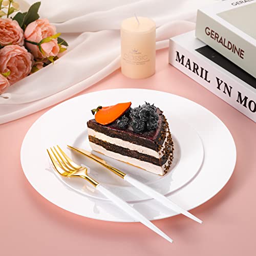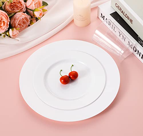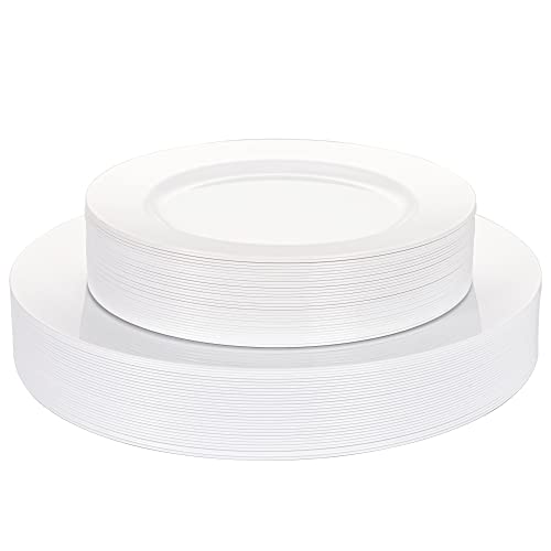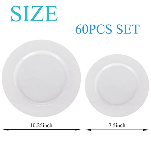 NZVCN - 60 PCS Plastic White Round Plates Set, Premiun Heavy-Duty White Disposable Party Plates, 30 PCS 7.5" Dessert Plate and 30 PCS 10.25" Dinner Plates for Party, Wedding