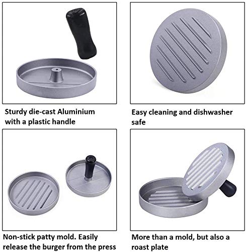 OAKBAY - مكبس برجر مقاوم للالتصاق من اوكباي، قالب فطائر من الألومنيوم للشواء والهامبرجر المنزلي