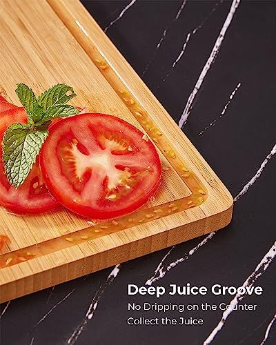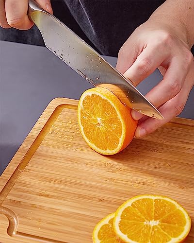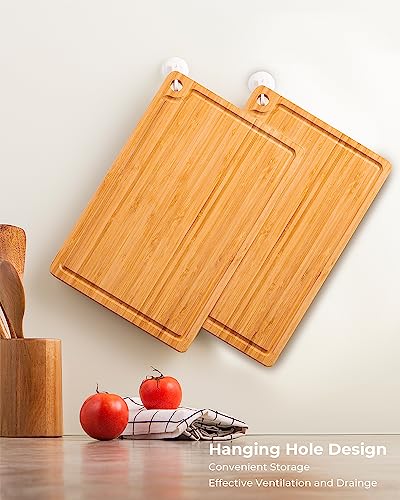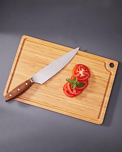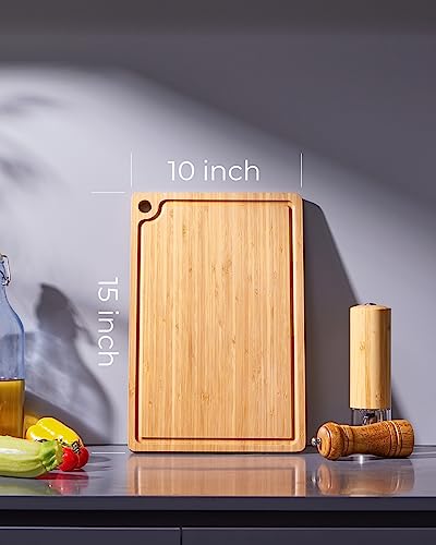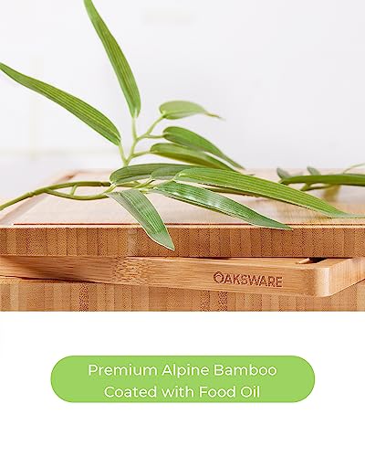 OAKSWARE - الواح تقطيع من الخيزران للمطبخ من اوكسوير، الواح خبز صغيرة، لوح تقطيع خشبي قابل للعكس مع اخدود عصير وفتحة تعليق للجبن واللحوم والفواكه والخضروات، مسبق الزيت، 38 سم × 25 سم × 2 سم