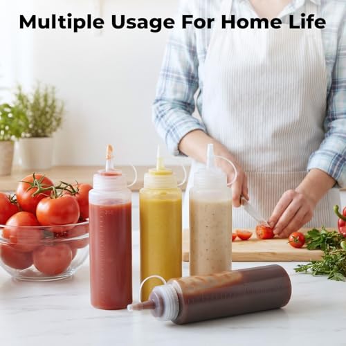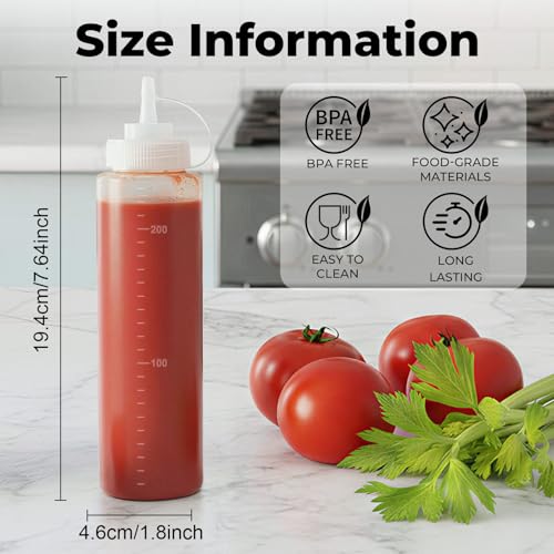 OAMCEG - زجاجات ضغط بلاستيك بغطاء للكاتشب والبهارات خالية من البيسفينول ا بمقاسات مختلفة 8 اونصة - عبوة 12 قطعة