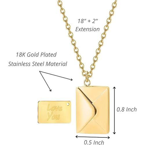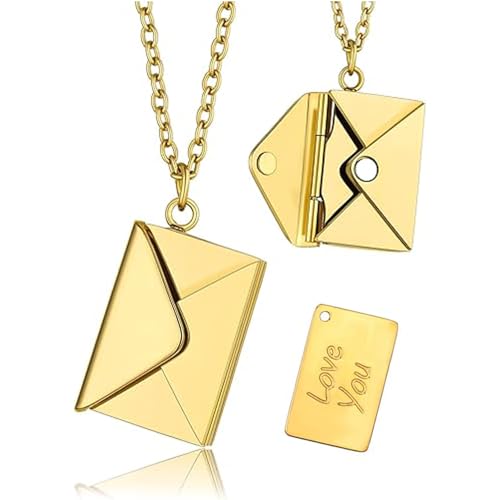 Oasisgalore - Love Letter Envelope Locket Necklace,Stainless steel Love You Engraving Secret Message Necklace Jewelry Gifts for Girlfriend Mother Wife.