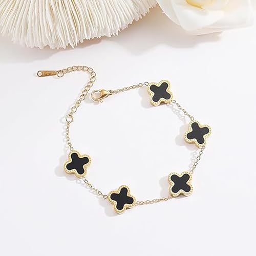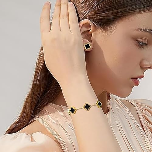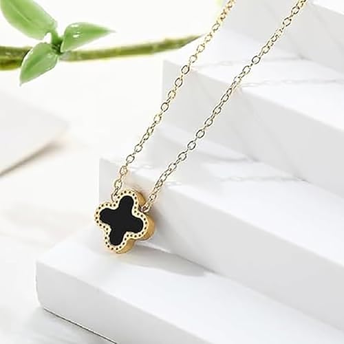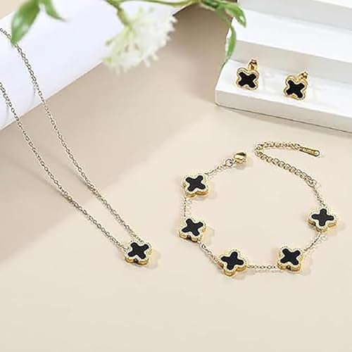 Oasisgalore - Luxury Fashion Jewelry Lucky Ladies Shell Four Leaf Clover necklace set Plated Stainless Steel jewellery (Gold-black), Gold