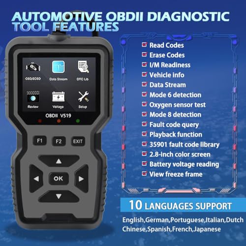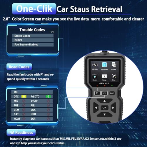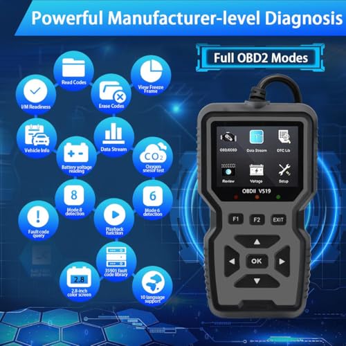 - 【Professional Diagnostic Power】Unlock comprehensive vehicle health insights with the V519 OBD2 Scanner. This advanced tool reads and clears engine fault codes (P0, P1, P2, P3 series) for cars, trucks, and SUVs, while displaying real-time battery voltage, RPM, and engine load. Perfect for DIYers and professionals, it eliminates guesswork by pinpointing issues like misfires, sensor failures, or emission system problems.