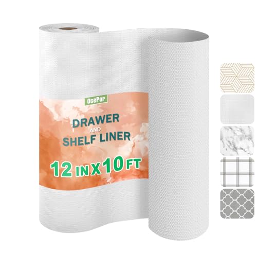 OcePor - OcePor Non-Adhesive Drawer and Shelf Liner 12IN x 10FT,Non Slip Cabinet and Cupboard Liner, Kitchen Cabinet Liners for Shelves, Waterproof Drawer Shelf Liners for Cabinets/Bathroom Cupboard,White