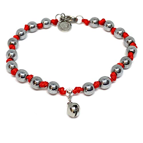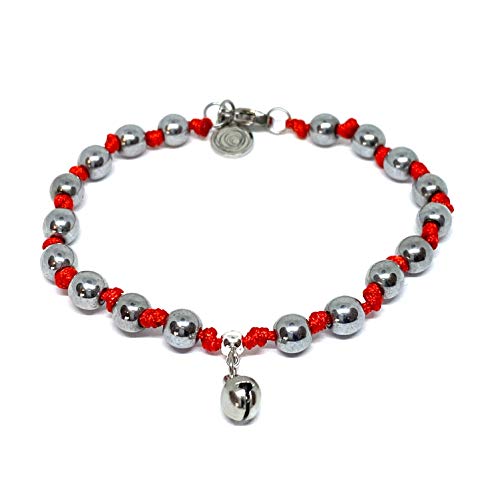 Ochrana - سوار بتصميم مكرامية قابل للتعديل من اوكرانا مصنوع من حجر الهيماتيت بحجم 6 ملم ودلاية جرس، احمر, ستانلس ستيل, الهيماتايت