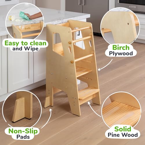 Ocodile - OCODILE Toddler Standing Tower - Adjustable Height Toddler Kitchen Stool Helper - Ideal Kids Kitchen Step Stool for Learning New Skills - Updated Design with Safety Feet - Varnished