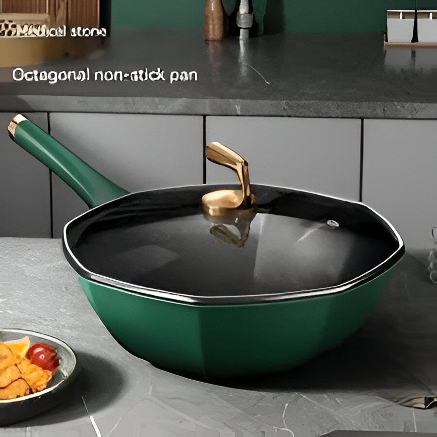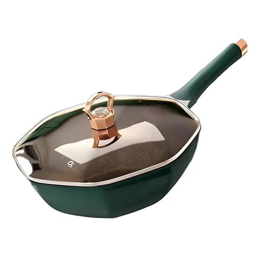 Generic - مقلاة مثمنة - اواني طهي متينة غير لاصقة مع غطاء، مثالية لشرائح اللحم والبيض المقلي ووجبات التخييم؛ طلاء زيتي صديق للبيئة للاستخدام الداخلي والخارجي