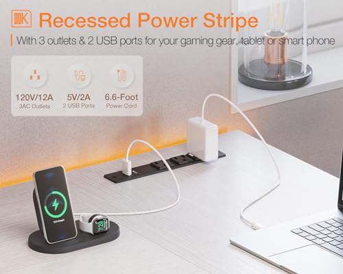 - 【منافذ طاقة ومنافذ شحن USB】 يأتي مكتب الكمبيوتر على شكل L من او دي كيه مع 3 منافذ طاقة ومنفذ شحن USB ومنفذ واحد من النوع C لأجهزتك الإلكترونية، يمكنك شحن الموبايل ومعدات الألعاب وأجهزة البلوتوث بسهولة وراحة عند العمل أو ممارسة الألعاب.