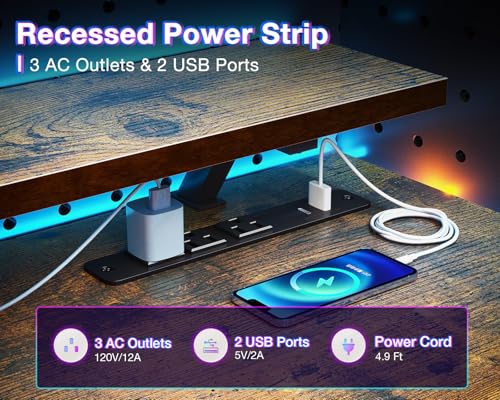 - 【Computer desk with Power Outlets】The office desk is equipped with 3 power outlets and 2 USB charging ports for your electronic devices, you can easily and conveniently charge your smart phone, gaming gear or Bluetooth devices when play computer games or work from home. A versatile hook provides additional storage space for your convenience.