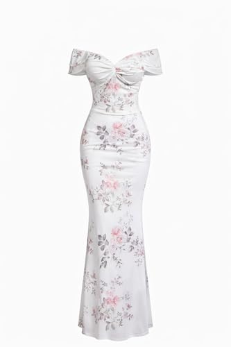 Generic - Off Shoulder Satin Evening Dress Soft Floral Pattern Elegant Feminine Special Occasion Long Dress