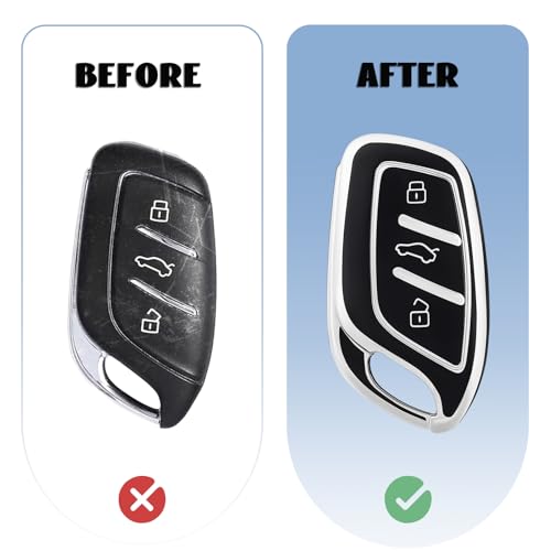 - 【مادة ناعمة】غطاء مفتاح السيارة لدينا مصنوع من مادة البولي يوريثين الحراري الناعمة والمتينة، مادة ناعمة، سهل التركيب والإزالة، بسطح أملس، مضاد للخدش، مع حماية من السقوط، مقاوم للماء، يحمي مفاتيحك 365 درجة، بحيث يتم الحفاظ على مفاتيح سيارتك في حالة جديدة تمامًا.