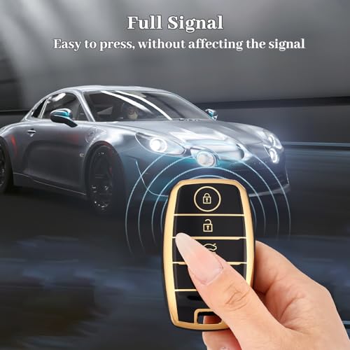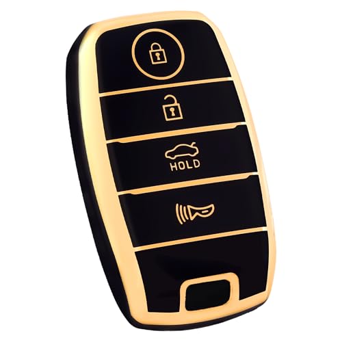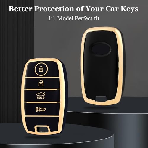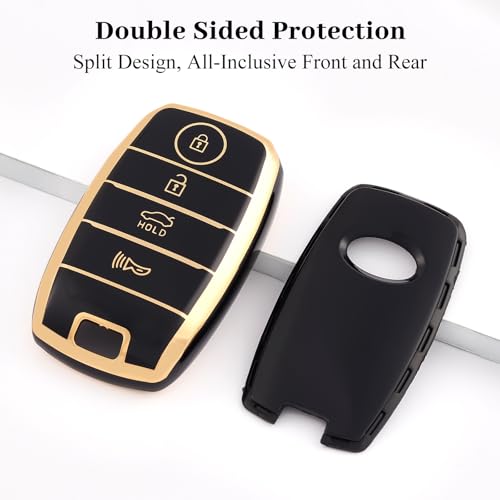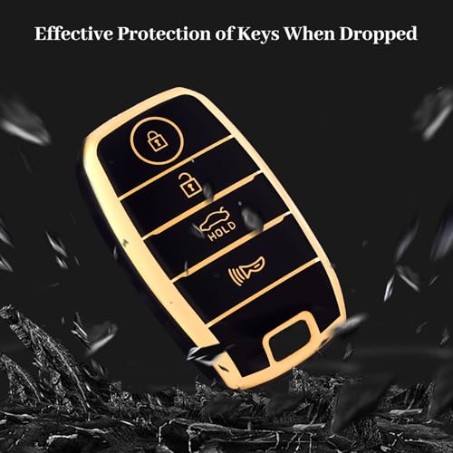 OFF WE GO - for Kia Key Fob Cover, Soft TPU Protection Key Fob Case Compatible with Kia Optima Forte Koup NIRO Rio Sorento Soul Sportage Smart Remote Keyless Shell Accessories (Gold Black)