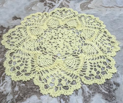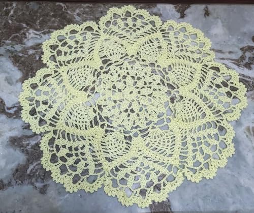 Generic - مفرش طاولة دائري مصنوع يدويًا من القطن بلون اوف وايت