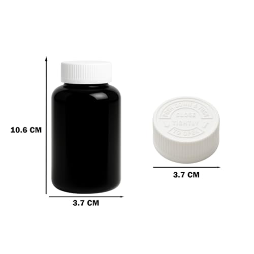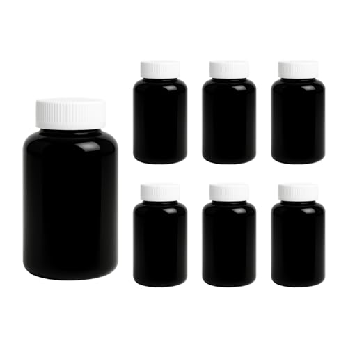 artistic - Offer 6 Pack Black Plastic Bottles 240ml Empty All Purpose Refillable Sterilized Healthy Medicine Bottles by (Funoni) (White Cap with Safety Press)