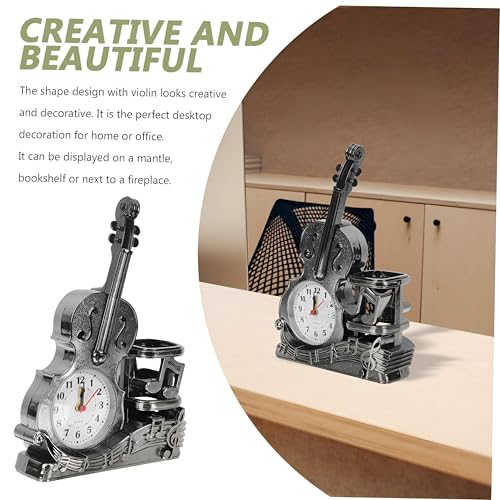 - تعمل هذه الساعة الديكورية التي تتميز بحامل كمان واقعي المظهر كحامل أقلام جذاب لمكتبك وتجمع بين التخزين العملي والتصميم الفني، وهي مناسبة للاستخدام المهني والشخصي.