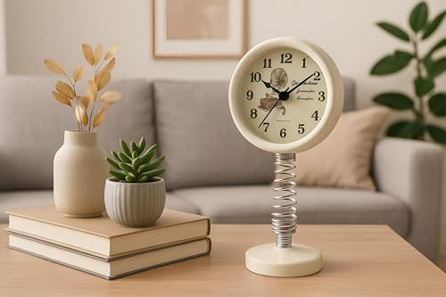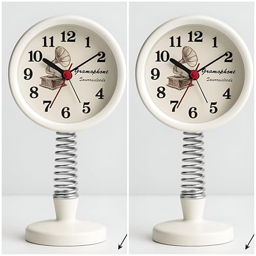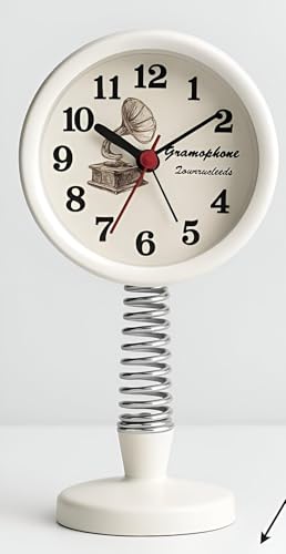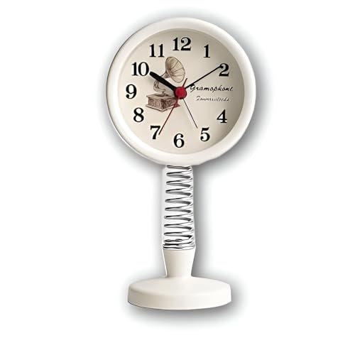 Generic - ساعة مكتب- ساعة مكتب أنيقة ومتينة مزدوجة الوظائف ومنبه سيارة بقاعدة زنبركية من الفولاذ المقاوم للصدأ مع حركة كوارتز صامتة، 15 × 5 سم، لون أبيض