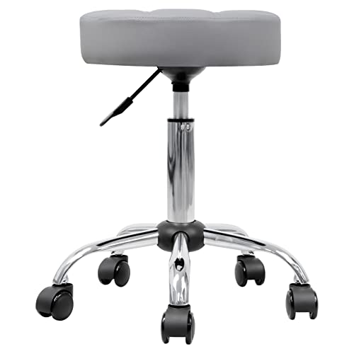 OFFICE FACTOR - كرسي دوار من جلد البولي يوريثين بارتفاع قابل للتعديل مناسب للصالونات والمنتجعات الصحية بعجلات مضادة للخدش من اوفيس فاكتور، لون رمادي