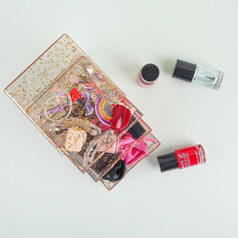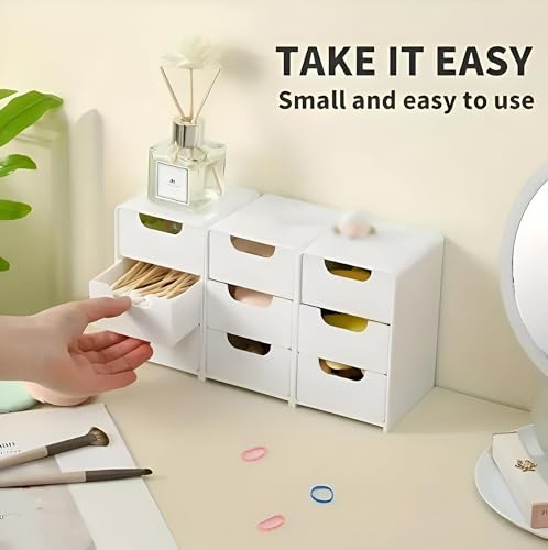 - Compact acrylic organizer with three drawers (8×9×13 cm) designed to keep your small essentials like paper clips, earrings, or hairpins neatly stored while adding a touch of modern elegance to your desk or vanity.