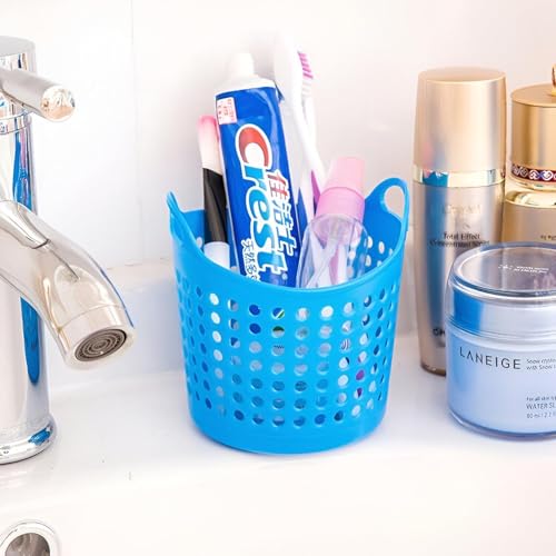 - The desktop storage basket set includes four colorful, round organizers made of durable plastic. These lightweight and flexible baskets feature handles that make them easy to transport and stack. Their vibrant colors add a cheerful touch to any workspace or home office, making them not just functional but also stylish. Each basket is designed to help you keep a tidy environment while holding a variety of items like pens, markers, and stationery neatly organized.