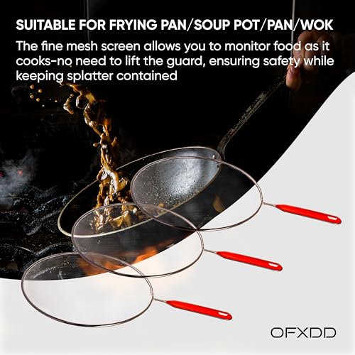 - يحتوي غطاء واقي الرذاذ على الزيوت الساخنة الفقاعية والصلصات المغلية والسوائل الساخنة المغلية وقطع الطعام داخل المقلاة. تحتوي كل شاشة رش للفرن على مقبض مريح مقاوم للحرارة لحمايتك أثناء الطهي - رائعة للتخزين الموفر للمساحة. للطهي بأمان، استخدم دائمًا واقي تناثر الشحوم لتجنب مخاطر الزيت الساخن والشحوم والماء المغلي وجزيئات الطعام من التناثر عليك وحرقك.