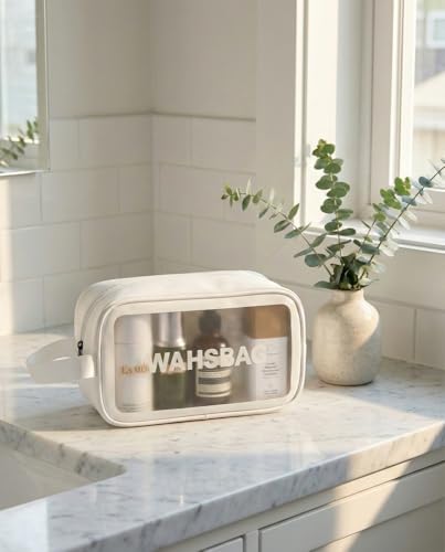 OGBK - OGBK WASHBAG Multifunctional Toiletry Bag for Hanging Transparent - Hand Luggage Cosmetic Bag - Waterproof PVC Travel Wash Bags Makeup Bags for Family Women Men (White, Medium)