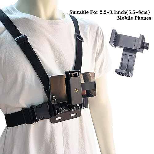 Ogetok - Adjustable Mobile Phone Chest Strap Harness Mount, Cell Phone Chest Strap Clip Holder Compatible with iPhone, GoPro Hero, AKASO, DJI Osmo Action Cameras for Video Recording Bike, Fishing, Black