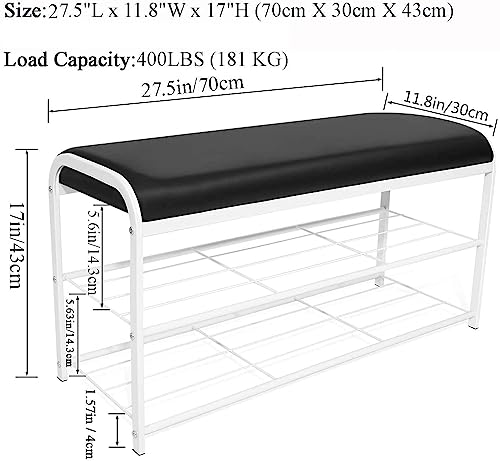 OGFC - 45475 Shoe Bench, Entryway Shoe Rack Bench, Shoe Organizer Storage Shelf, Leather Cushion & Metal Frame, Living Room (28.5" x 11.8" x 19.3", Black & White)