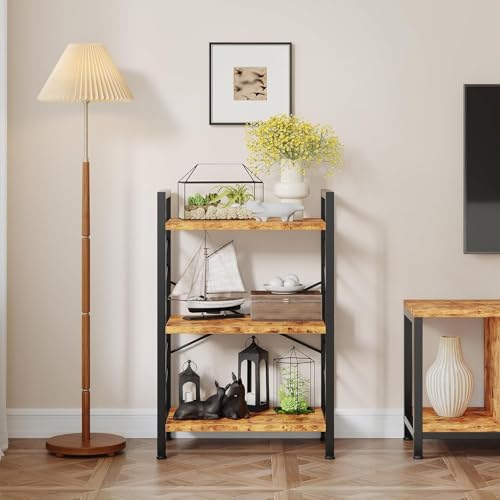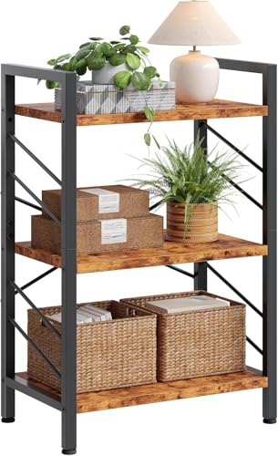 OGFC - 58546 Book Shelf, 3 Tier Industrial Bookcase with Metal Frame and 2 Sidebars, Small Bookshelf for Bedroom, Home Office and Living Room, Rustic Brown
