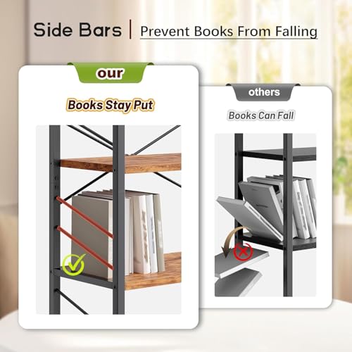 - 【Upgraded Metal Bookshelf】: OGFC quality book shelf seamlessly blends aesthetics and practicality.This industrial book case features reinforced X-shaped wire design for added sturdiness and features 2 side metal reinforcement strips to ensure stability and prevent items from falling. And anti-tip kit firmly anchors the entire structure.OGFC sturdy design eliminates any worries about shaking or instability. Max load:220 lbs.