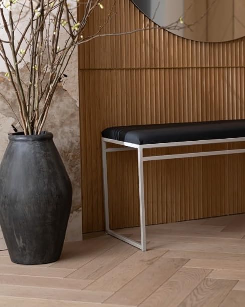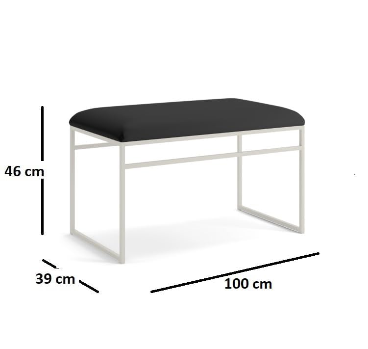OGFC - مقعد مدخل 64301 من او جي اف سي، مقعد مدخل للمنزل والمكتب، وسادة جلد صناعي اسود واطار معدني رمادي، مناسب لغرفة المعيشة/غرفة النوم/المكتب (100 سم × 46 سم × 39 سم)