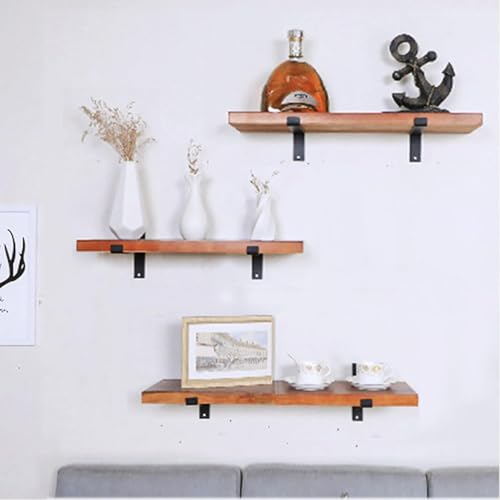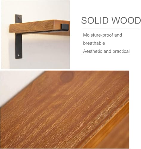 - Premium Quality Wall Shelves: Simple design floating shelves constructed of solid pine wood and metal brackets, the metal bracket is treated with electrophoresis on the surface, not easy to fall off and rust, which is lightweight yet strong enough to serve its purposes. Per shelf has max load-bearing capacity of 40lbs. perfect for displaying and holding collectibles, small plants, stuffed animals and more.