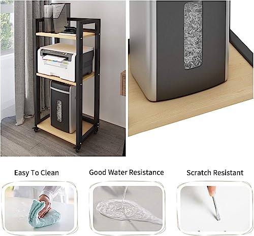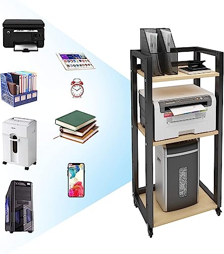 OGFC - XL65204 Movable Printer Stand 3-Tier with Storage Black Rolling Floor-Standing Deskside Shredder Computer Host Stand Adjustable Storage Shelf Rack on Wheels for Office Supplies
