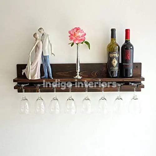 - Multi-Functional: You can use this wall ledge to store bottles or you can display your favorite family pictures on top and glasses in bottom. Make a statement by storing up to 6 to 7 wine bottles and 8 wine glasses depending on the size.