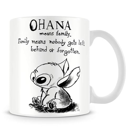 Giftme - Ohana Means Family Stitch Coffee Tea Cocoa Soup Daily use Mug Birthday Gift Party gage Keepsake C Handle Unique Ceramic Cup Mug. (White Mug)