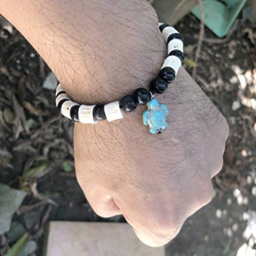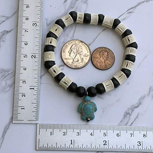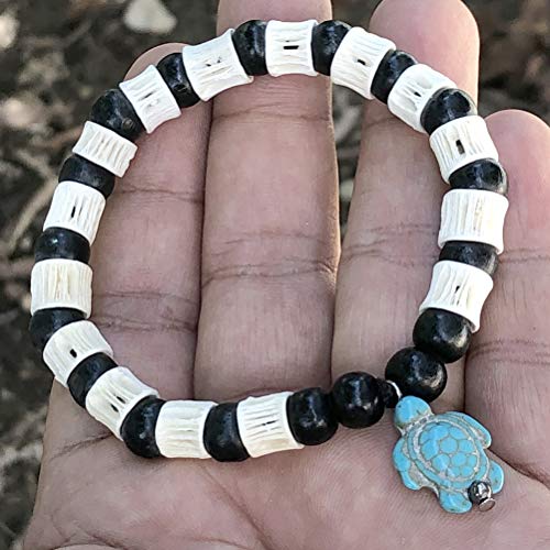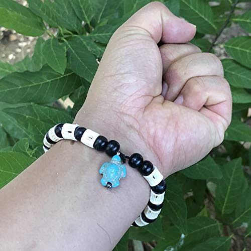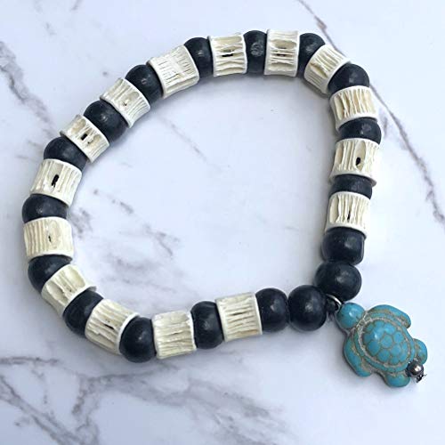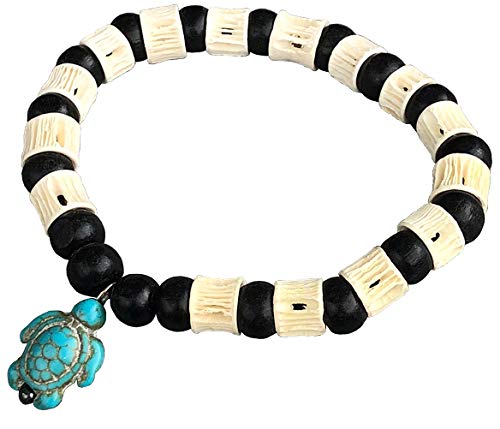 OhDeal4U - سوار بتصميم سلحفاة للجنسين مزين بعظمة بيضاء وخرز خشبي دائري اسود