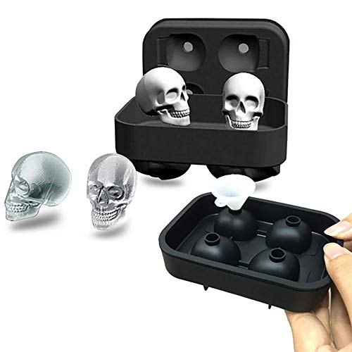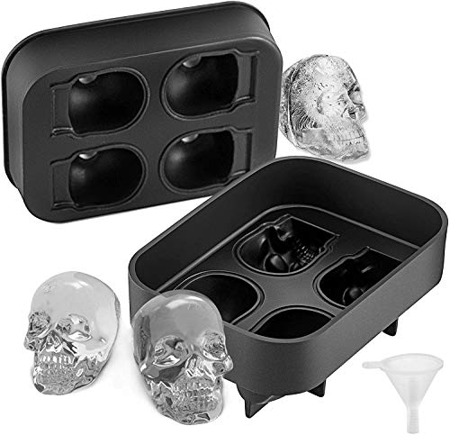 - قالب سيليكون مبتكر وممتع: أربعة قوالب مكعبات ثلج على شكل جمجمة مقاس 1.57×1.8 بوصة. مكعبات ثلج على شكل جمجمة حقيقية، تذوب ببطء وممتعة في صنعها.