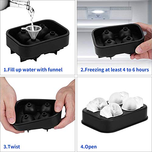 OHJ - قالب مكعبات ثلج سيليكون ثلاثي الابعاد، صينية ثلج سيليكون سوداء مرنة مع غطاء وقمع، بتصميم جماجم، مضادة للتسرب، قوالب لعمل مكعبات الثلج للمشروبات ولعمل الشوكولاتة والصابون وكرات الاستحمام (اسود)