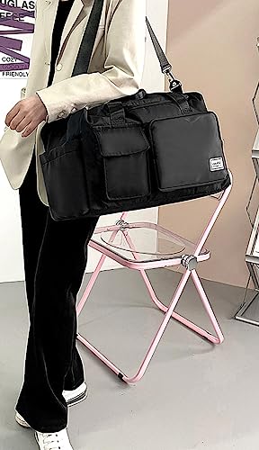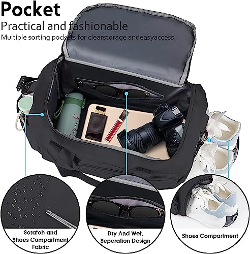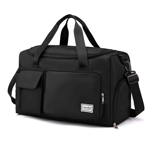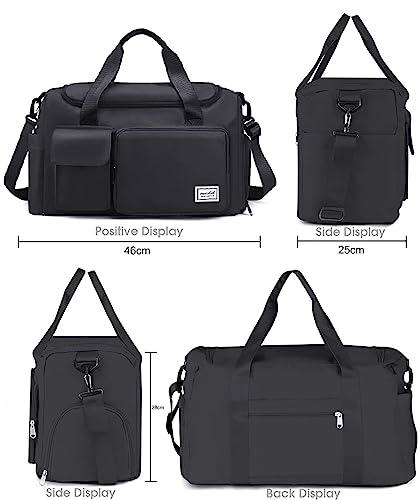 OhMill - اوم شنطة سفر من القماش الخشن بسعة كبيرة، شنطة امتعة مقاومة للمطر لصالة الالعاب الرياضية مع جيب منفصل للحذاء الجاف والرطب للرجال والنساء، اسود، مقاس واحد