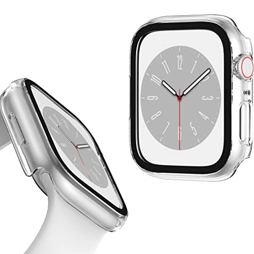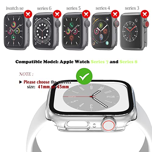 OHPROCS - Case Compatible with Apple Watch Series 9/8/7 41mm 45mm Screen Protector Cases Full Protective Face Cover Hard Bumper Frame with Tempered Glass for iWatch 9/8/7 Accessories (Clear, 41mm)