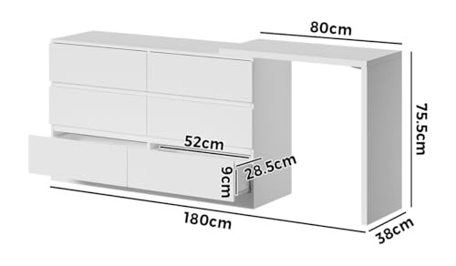 - Modern Design: Sleek handle-free drawers and a clean white finish suit any contemporary interior