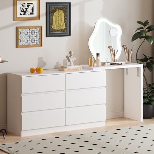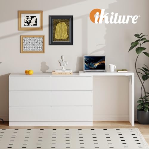 OIKITURE - Oikiture Chest of Drawers – 6 Drawer White Tallboy Storage Cabinet Dresser for Bedroom