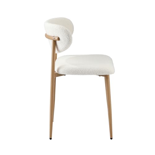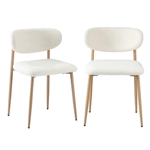 OIKITURE - OIKITURE Dining Chairs Set of 2, Kitchen Chairs with Contoured Backrest, Boucle Dining Chair with Anti-Slip Floor Protectors for Dining Room Cafe Office, Wood&White