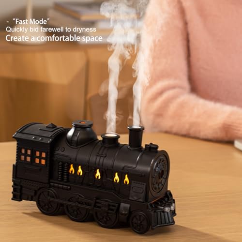 - - Our steam train humidifier diffuser offer a classic touch of nostalgia. Classic train design with “Smoke Ring” effect, perfect for train enthusiasts of all ages to enjoy. It is small and portable.