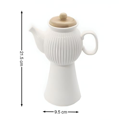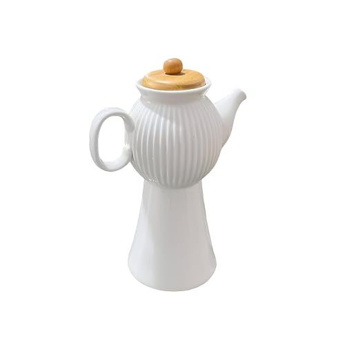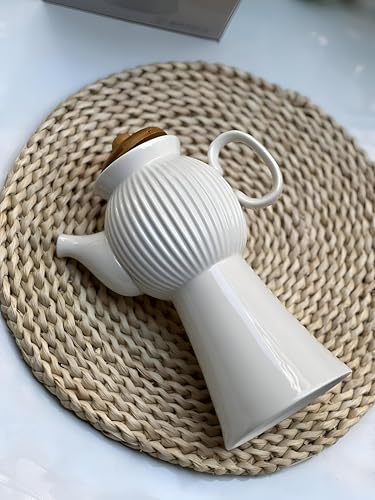 Generic - ابريق توزيع الزيت - تصميم سيراميك عصري وانيق مع غطاء ابيض مخطط ولمسة تجمع بين الجمال والعملية لتقديم لحظات راقية في المنزل او المكتب (500 مل، 8.45 انش)