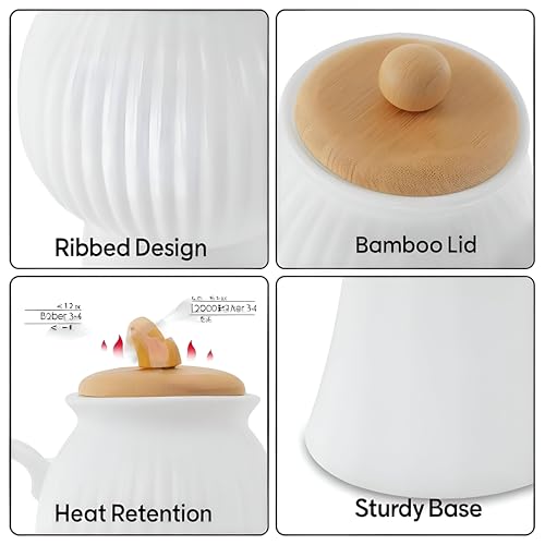 - أناقة عصرية في كل صب - هذا الوعاء الخزفي الأبيض مع خطوط عمودية مصقولة وغطاء من الخيزران الطبيعي يمزج التصميم المستوحى من الشمال مع العملية اليومية. يبلغ ارتفاعه 8.45 انش وعرضه 3.75 انش، ويقف كقطعة مركزية تكمل أي إعداد تقديم بأناقة.