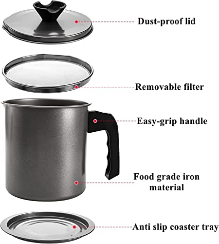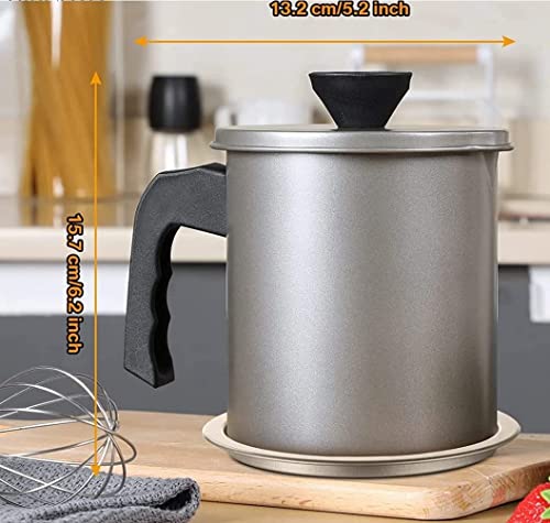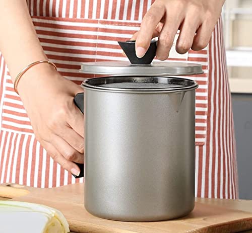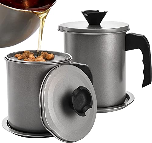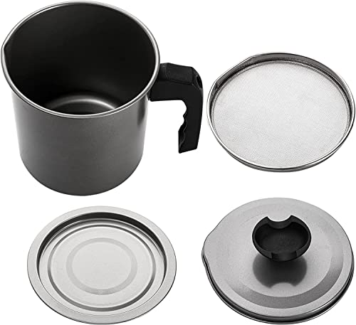 TAPUJI - وعاء تصفية الزيت وحفظ شحم اللحم المقدد، مزود بمصفاة شبكية دقيقة لتخزين زيت الطهي، وحافظة شحوم مزودة بصينية وغطاء قابلين للإزالة لتخزين الدهون وزيت الطهي المستخدم وزيت القلي في المطبخ، 1.4 لترًا