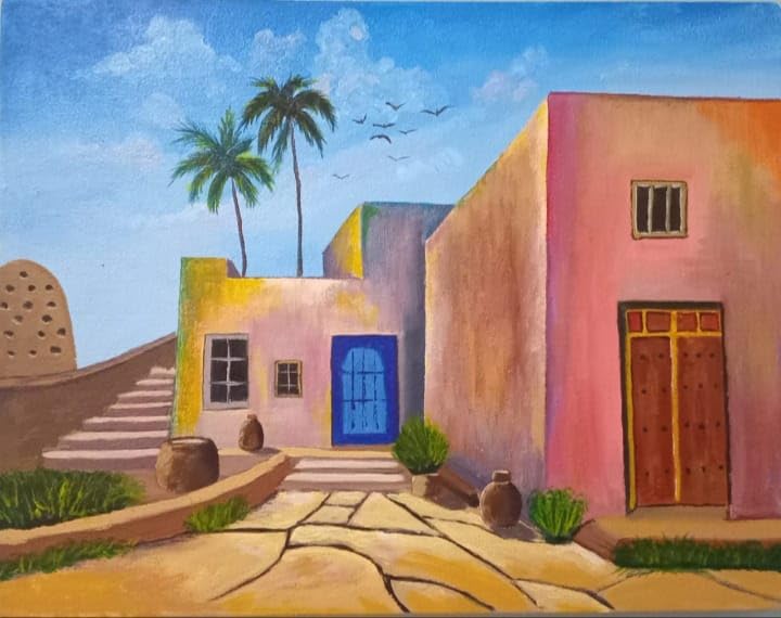 Egypt Antiques - Oil painting Nubian Houses 100% Egyptian Made By Egypt Antiques 50 cm x 40 cm